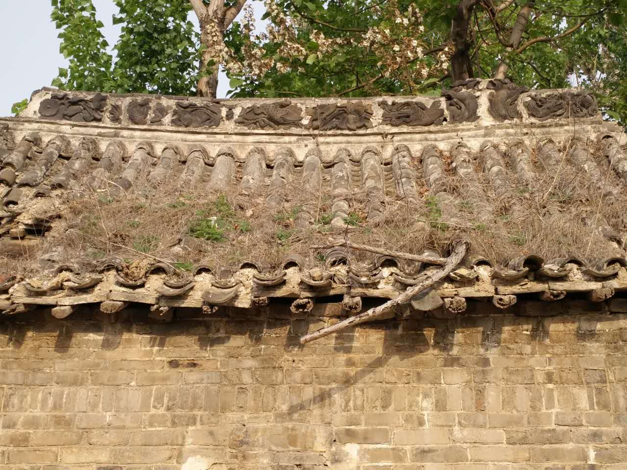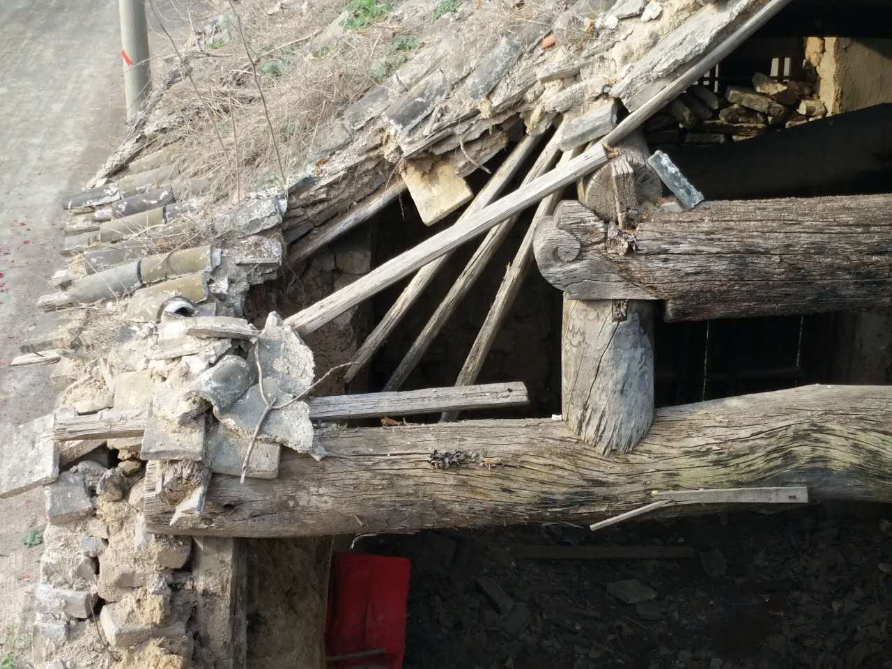 我大爷深情的讲到,我曾祖父也就是他的爷爷,是一名律师,在县太爷的府邸也有他的位置,每次打官司他都能打赢,十分有名。同时老爷爷也是守护这座庙的人(大概在民国时期),能成为守护人是因为这座庙老奶奶的圣像是我老爷爷的父亲(我高祖父)给塑的。又看到已坍塌一般的屋梁都是二层梁结构,第一层是龙头造型(附照片)。我二大爷接着讲到,三十年前我家(堂哥家)能在此建宅基地,当时就是因为乡镇里人都认可我们家继承守护这座庙。