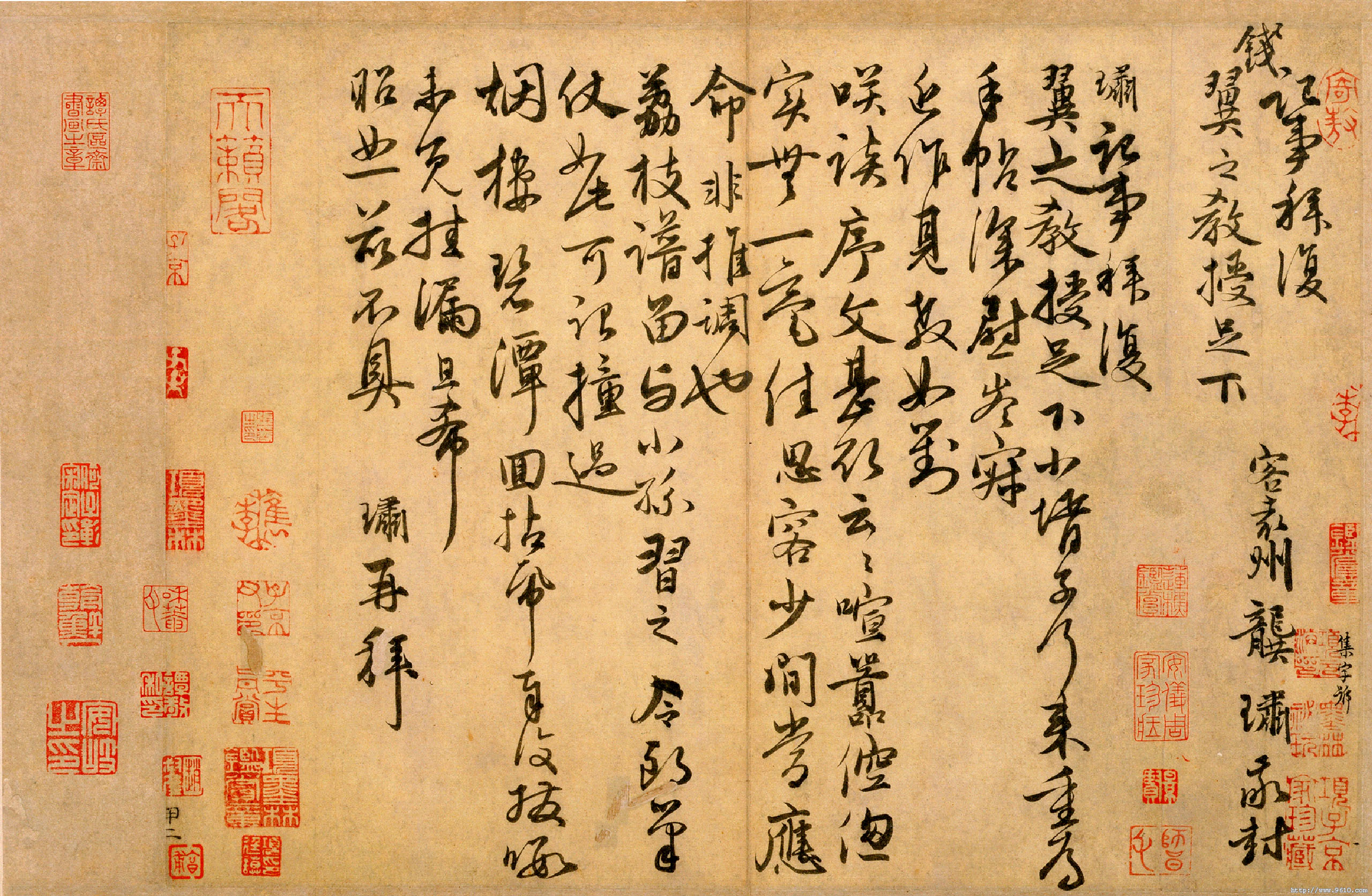 作者简介:龚璛(1266-1331),一作肃,字子敬,号谷阳生,元代书法家。江苏高邮人,后徙居平江(今江苏吴县)。少为徐琬辟幕下,后充和靖、学道两书院山长,以浙江儒学副提举致仕。与戴表元、仇远等人交善。工诗文,擅书法。着作有《存悔斋集》一卷,补遗一卷。传世书迹有《教授帖》《静春堂诗序》《宣城诗并识卷》等。