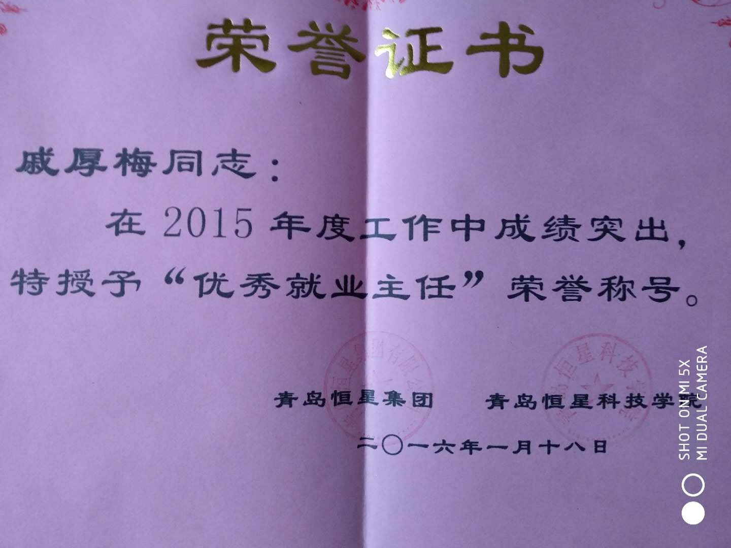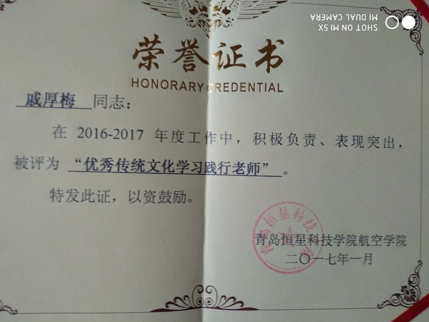 厚梅,是荣德之长女。生于乙酉一九六九年四月十九日。母亲说,是早上五点左右的时辰。 虽然50岁的人了,善良、忠厚、诚实是我的为人处世的性格,孝和是做人的座右铭。从小时候,看到吵架。打架的就害怕。自己曾经幻想,如果做一名老师就好了。但是命中没有这么高的学问、学历。算命先生说,看你的手相,学问不高,顶多是个中专学历。确实如此。但是,想改命,找不到方法,缺少贵人指点。没有捷径,只能自己努力工作,加紧学习,学习相关的服装专业知识,学习做人的学问和道理。最终在2007宁5月,一个偶然的机会,让我进入青岛恒星职业技术学院,成为了一名实训教师,一直至今。其中做过服装实训基地的中心主任、服装学院执行院长,搭档辛若东、教育学院执行院长,搭档刘成德、商务学院、电商学院就业主任,电信营业厅的负责人,传统文化学习践行者、雨花斋义工,在航空学院带中专中华优秀传统文化义工试点班,艺术学院服装设计本科专业的工艺课老师,室内设计1711班班主任。并且不敢于落后的人生态度,始终促使着我,是我每年都被评委优秀工作者。以诚待人,以和为贵,以孝治家,是永远不变的人生格言。