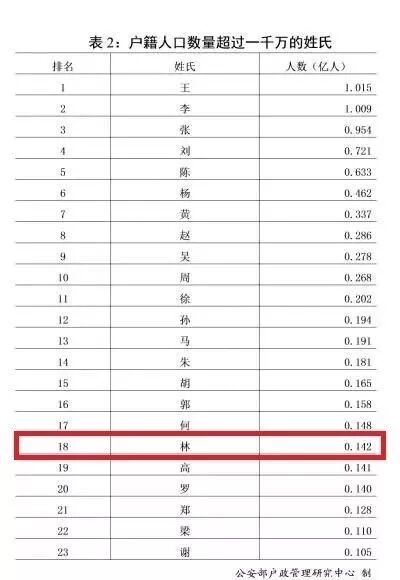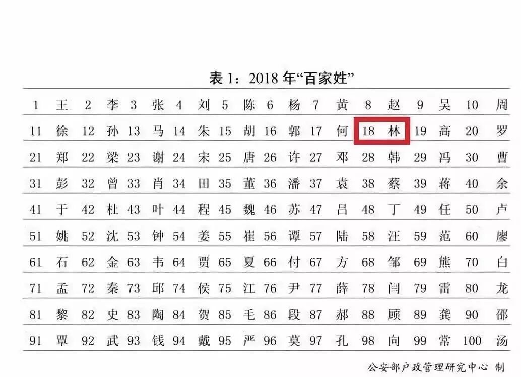 但经中国人民大学人口与发展研究中心研究表明,林氏聚集指数排名全国各大姓氏第一,远超排名第二、第三的黄氏和孙氏。