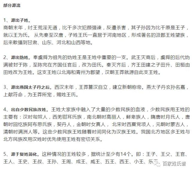 4.出自田姓,公元前368年,田和取代姜姓为齐国君主,史称“田氏代齐”,传八王,被秦所灭,其子孙被废为庶民,其中一支自认为齐国王族,遂以王为姓;